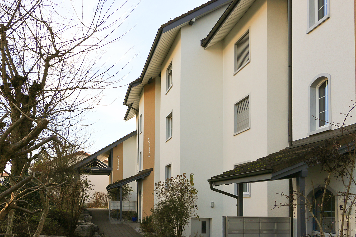 Nach Abbruch von 10 Einfamilienhäusern entstanden in den Jahren 1987/1988 zwei zusammengebaute, dreigeschossige Häuser mit zwölf Dreieinhalb-, fünfzehn Zweieinhalb-, zwei Zwei- und vier Eineinhalbzimmner-Wohnungen mit einer Unterniveaugarage mit 40 Einstellplätzen.